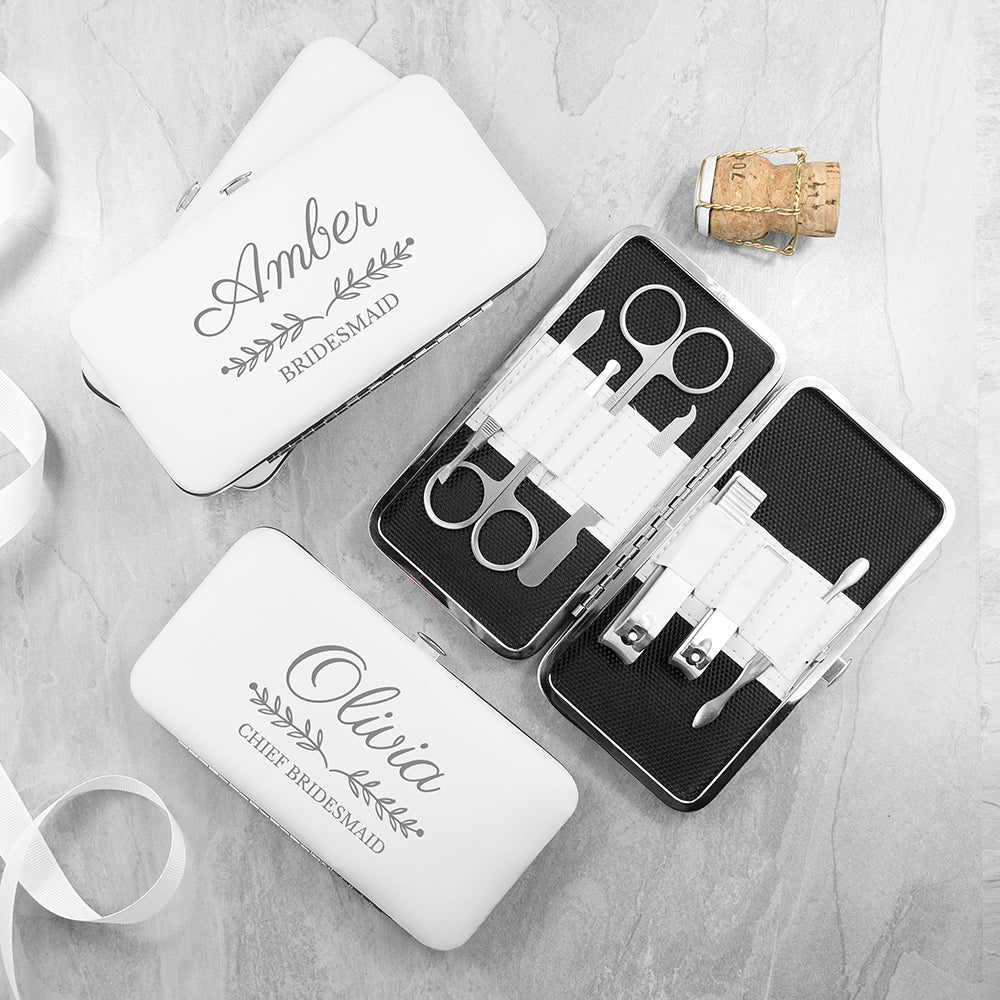 Wonder Gifts Personalised White Bridal Party Manicure Set – Custom Wedding Gift
