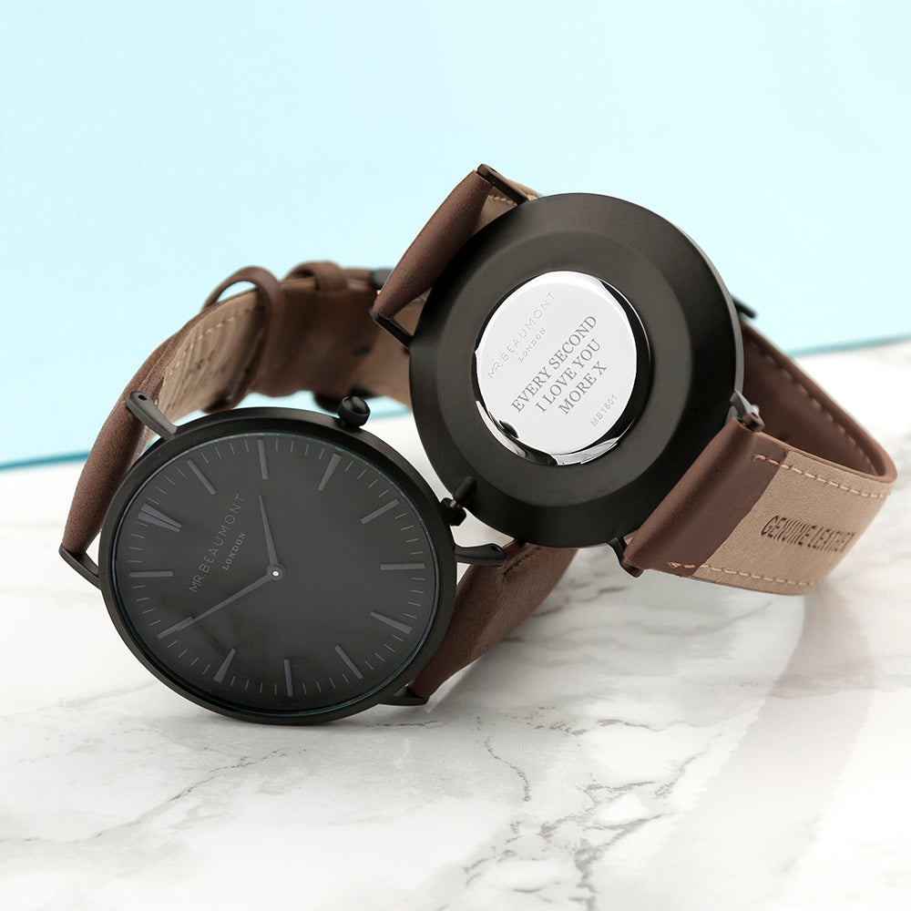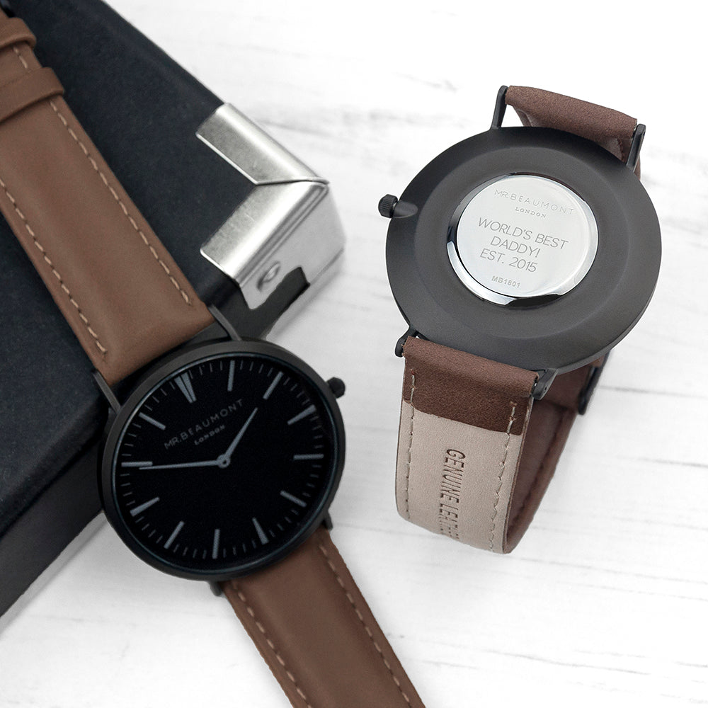 Men's Modern-Vintage Personalised Watch With Black Face in Brown
