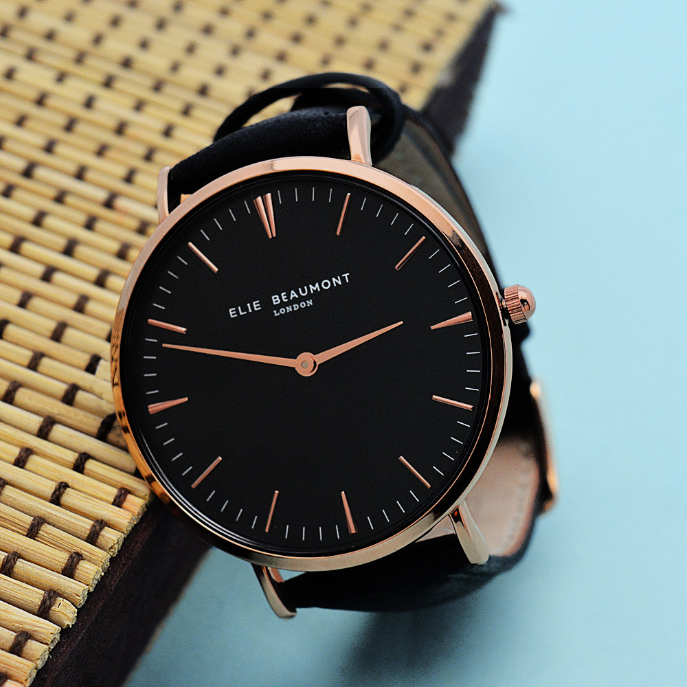 Personalised Men's Modern-Vintage Leather Watch In Black