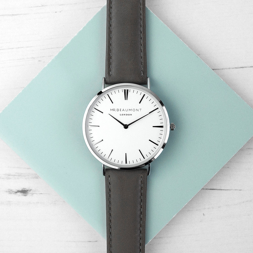 Men's Modern-Vintage Personalised Leather Watch In Ash