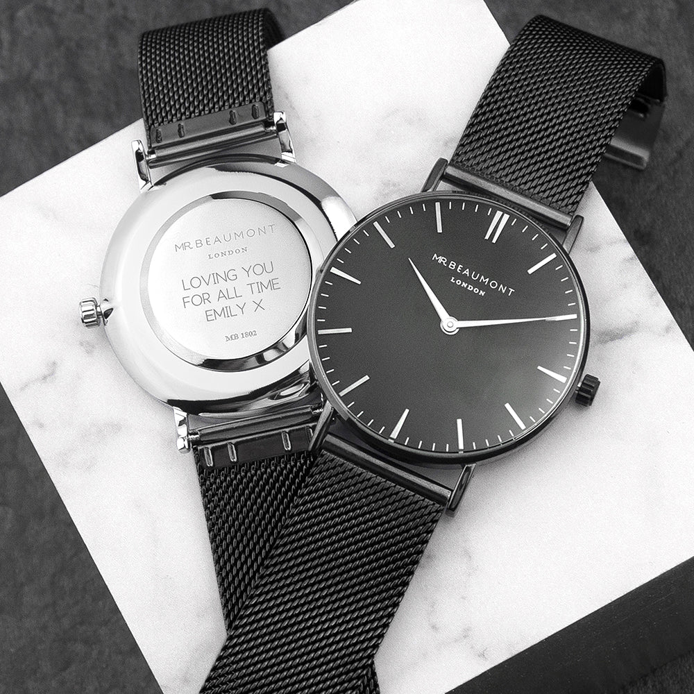 Personalised Men's Modern-Vintage Watch With Black Face in Ash